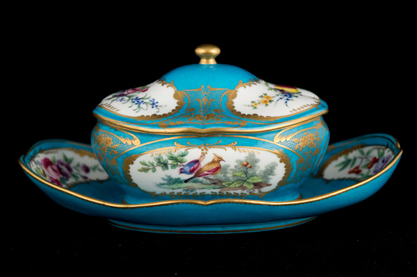 P060 – SEVRES (LATER-DECORATED) BLEU CELESTE GROUND SUGAR-BOWL,