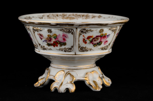 Mid-19th century Painted with panels of flower sprays, raised on leafy feet (gilding worn) Height: 4-5/8”