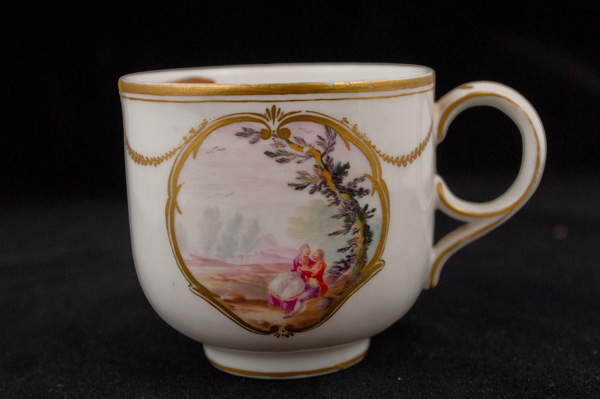 Circa 1784, blue L. mark Painted with an amorous couple in landscape 2 ½ in. (6.4 cm) high LITERATURE Cleo M. and G. Ryland Scott Jr., Antique Porcelain Digest, Newport, England, 1961, plate 112, fig. 390. EXIBITION On display in the “George Ryland Scott Collection” in The Memphis Brooks Museum of Art from June 1955 until May 1960.