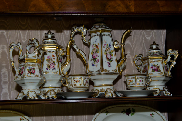 Early 19th century Applied pad molded HAVILAND Each of hexagonal form, each panel painted with floral sprays, comprising: A teapot and cover A coffee-pot and cover A sugar-bowl and cover A waste bowl A cream-jug Eight cups Five saucers Eight small plates (27) EXIBITION On display in the “George Ryland Scott Collection” in The Memphis Brooks Museum of Art from June 1955 until May 1960.