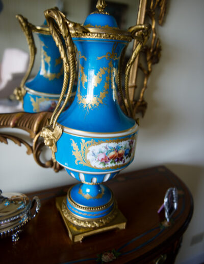 P030A – PAIR OF ORMOLU-MOUNTED SEVRES STYLE TURQUOISE-GROUND VAS